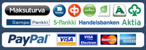 Visa, MasterCard ja American Express -luottokortit (PayPal)